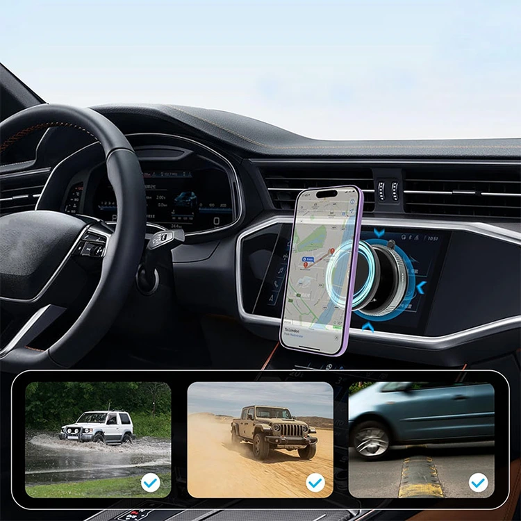 பரந்த சாதன இணக்கத்தன்மை: எங்கள் கார் ஃபோன் மவுண்ட் சமீபத்திய iPhone மாடல்கள் (16/15/14/13/12) மற்றும் அனைத்து MagSafe-இணக்கமான சாதனங்களுடன் இணக்கமானது. MagSafe அல்லாத சாதனங்களுக்கு, கூடுதல் பிடிப்புக்காக அதிக வலிமை கொண்ட காந்த வளையம் சேர்க்கப்பட்டுள்ளது. ஃபோன் பெட்டியுடன் அல்லது இல்லாமல், உங்கள் ஃபோன் ஒரு கையால் உடனடியாக இணைக்கப்படும். பெரும்பாலான கார் மாடல்களுடன் இணக்கமானது, இந்த தனிப்பயனாக்கப்பட்ட கார் ஃபோன் மவுண்ட் நவீன டிரைவர்களுக்கு பாதுகாப்பான மற்றும் சிரமமில்லாத நிறுவலை வழங்குகிறது.