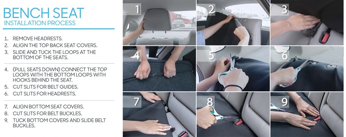 நீடித்த பாதுகாப்பு: உயர்தர பொருட்கள் அழுக்கு, கசிவு மற்றும் தேய்மானத்தை எதிர்க்கும், OEM இருக்கைகள் மற்றும் வாகன மறுவிற்பனை மதிப்பைப் பாதுகாக்கிறது.