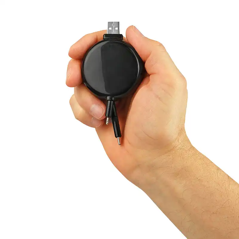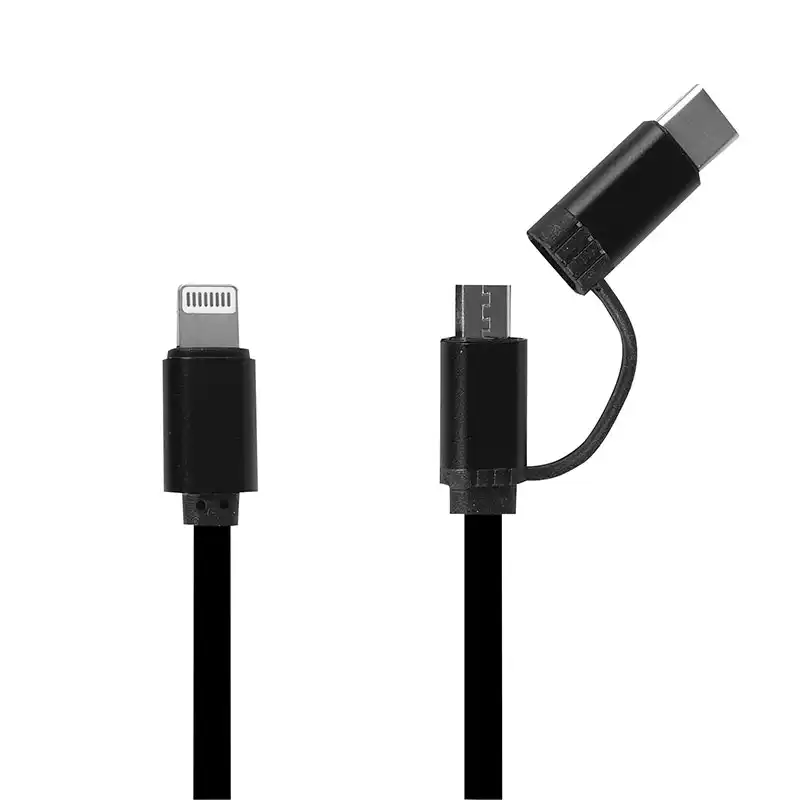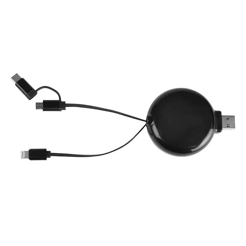 பன்முகத்தன்மை வாய்ந்த 3-இன்-1 தீர்வு, ஒருங்கிணைக்கப்பட்ட மின்னல், மைக்ரோ-யூ.எஸ்.பி மற்றும் யூ.எஸ்.பி-சி இணைப்பிகள் அதிகபட்ச இணக்கத்தன்மைக்காக ஒற்றை உள்ளிழுக்கும் ரீலில்.